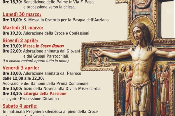Venerdì santo Oggi sostiamo preso la croce per ringraziare il Signore del dono del suo amore. Ore 10,00: adorazione animata Ore 12,00/12,30 adorazione dei bambini […]