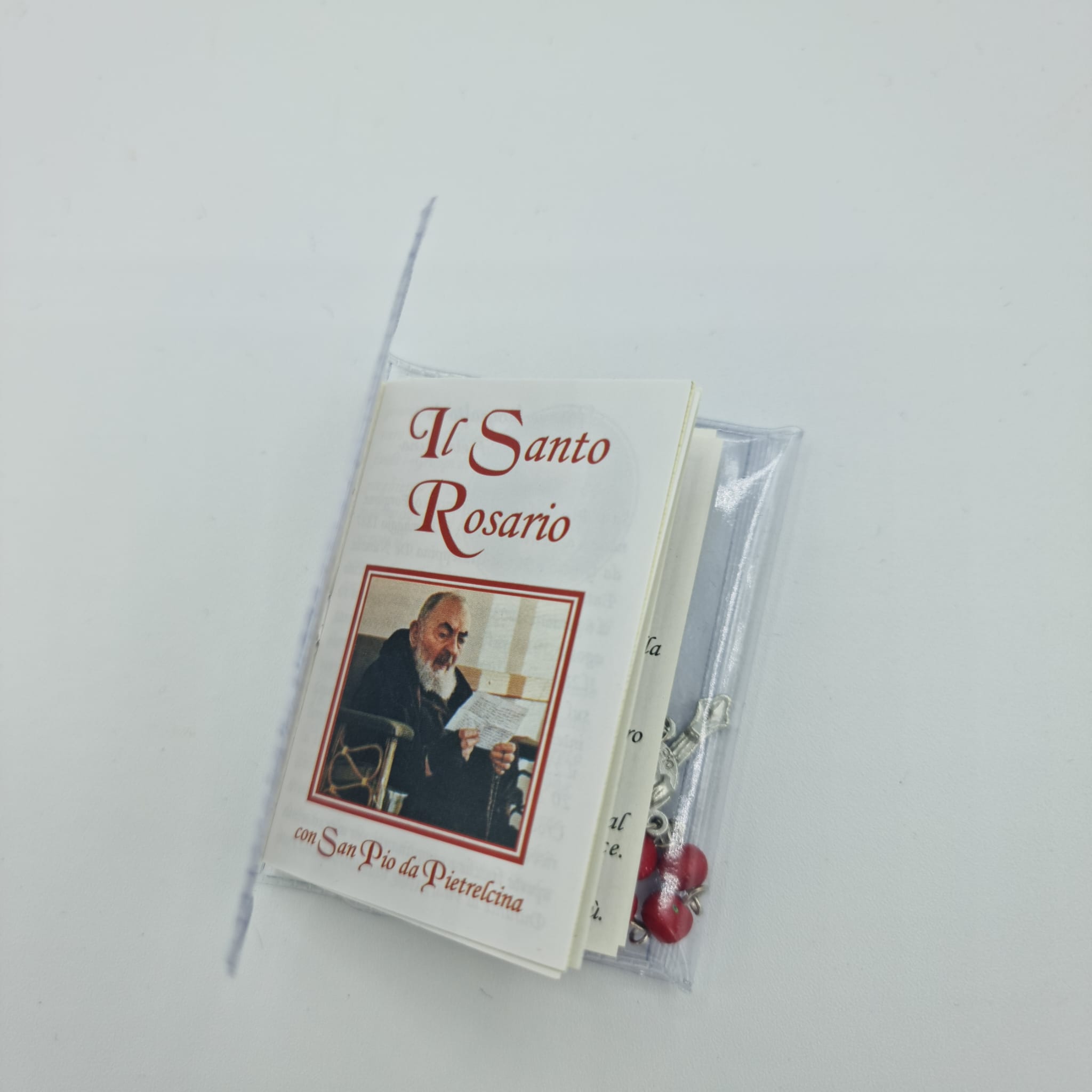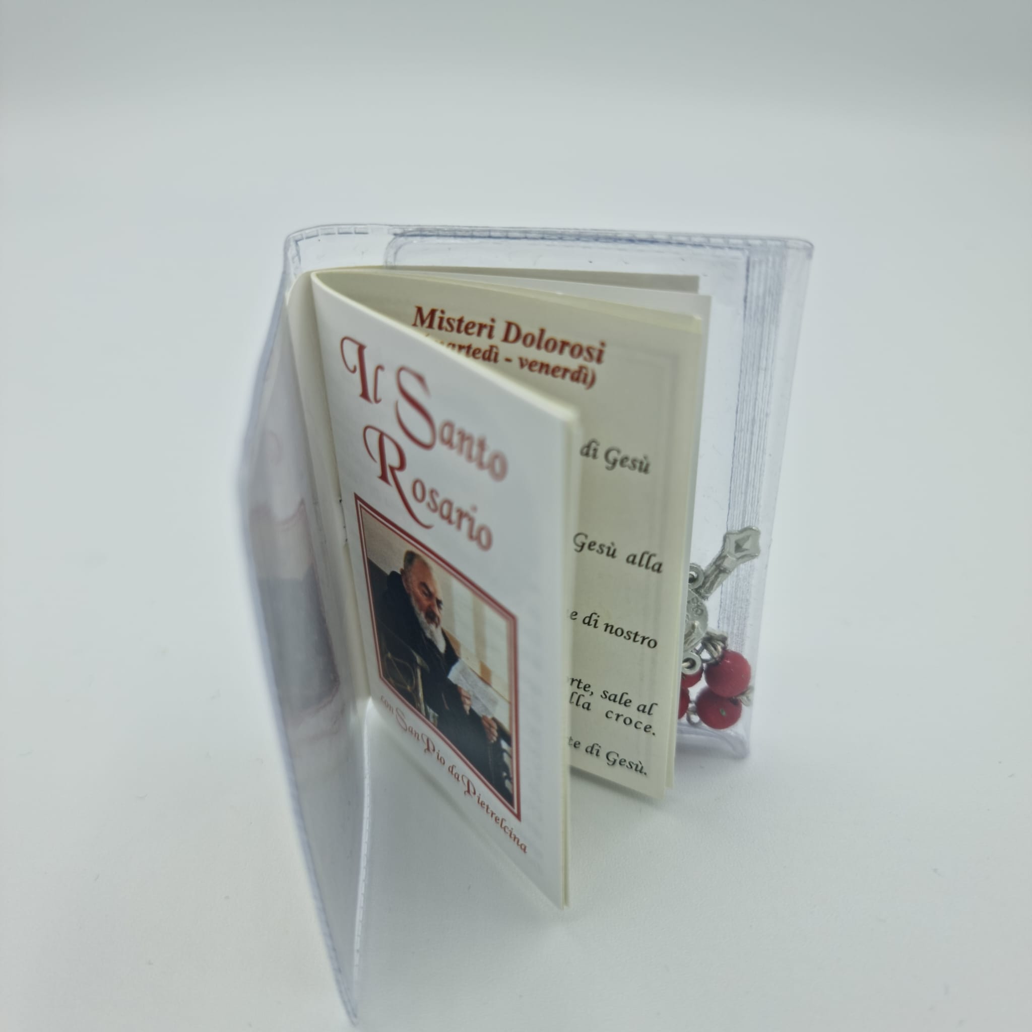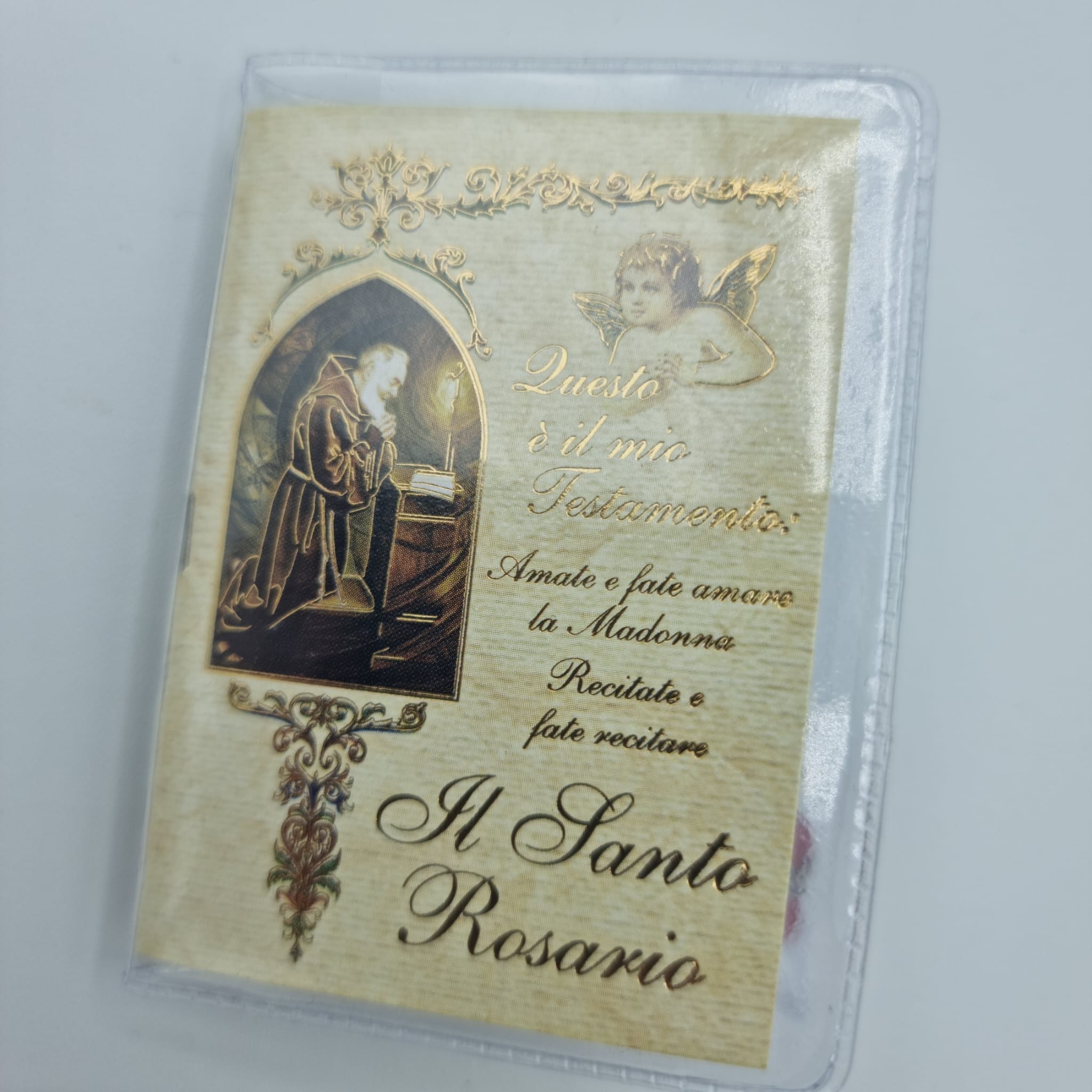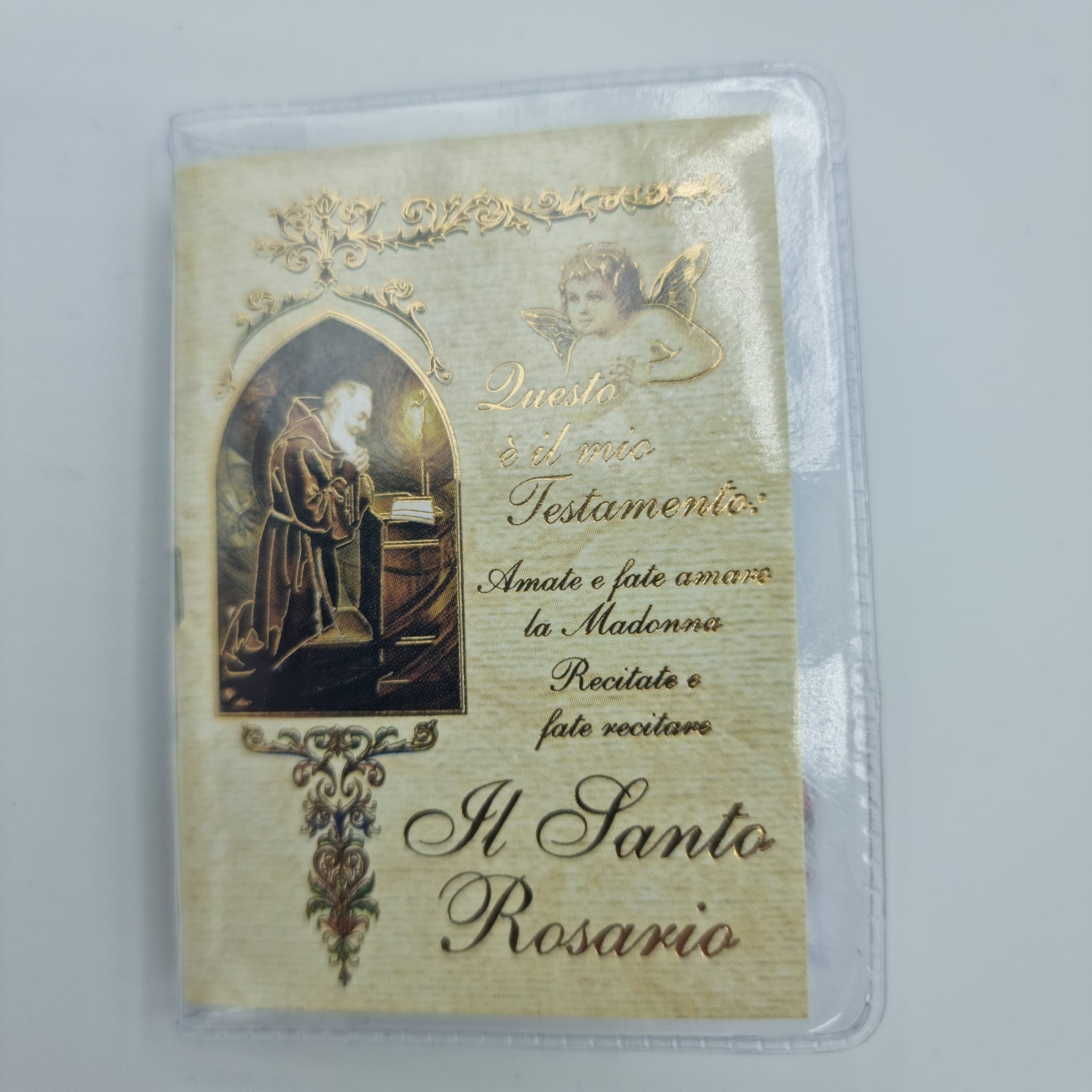 Custodia in pvc a tre tasche con libricino per la recita del “Santo Rosario”.