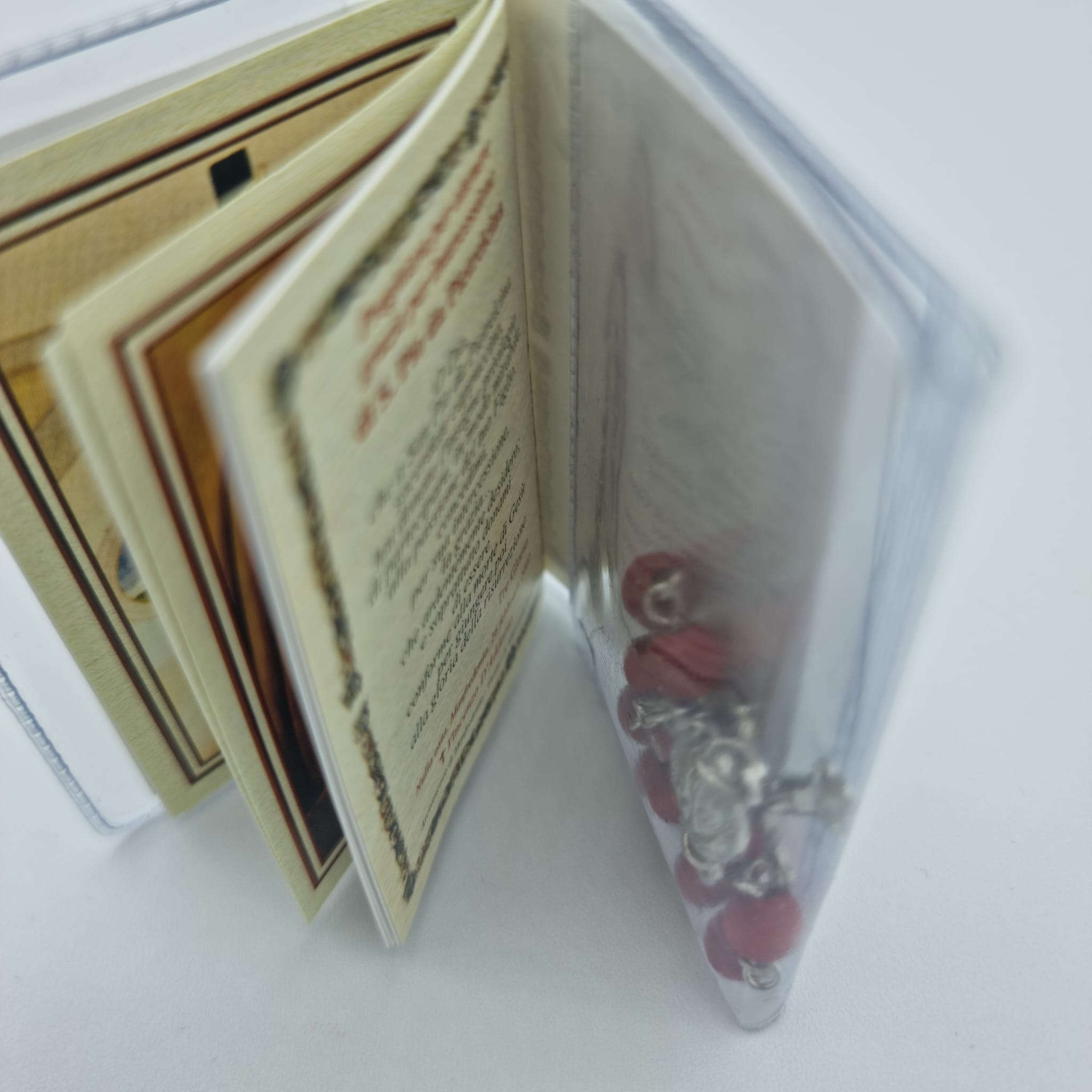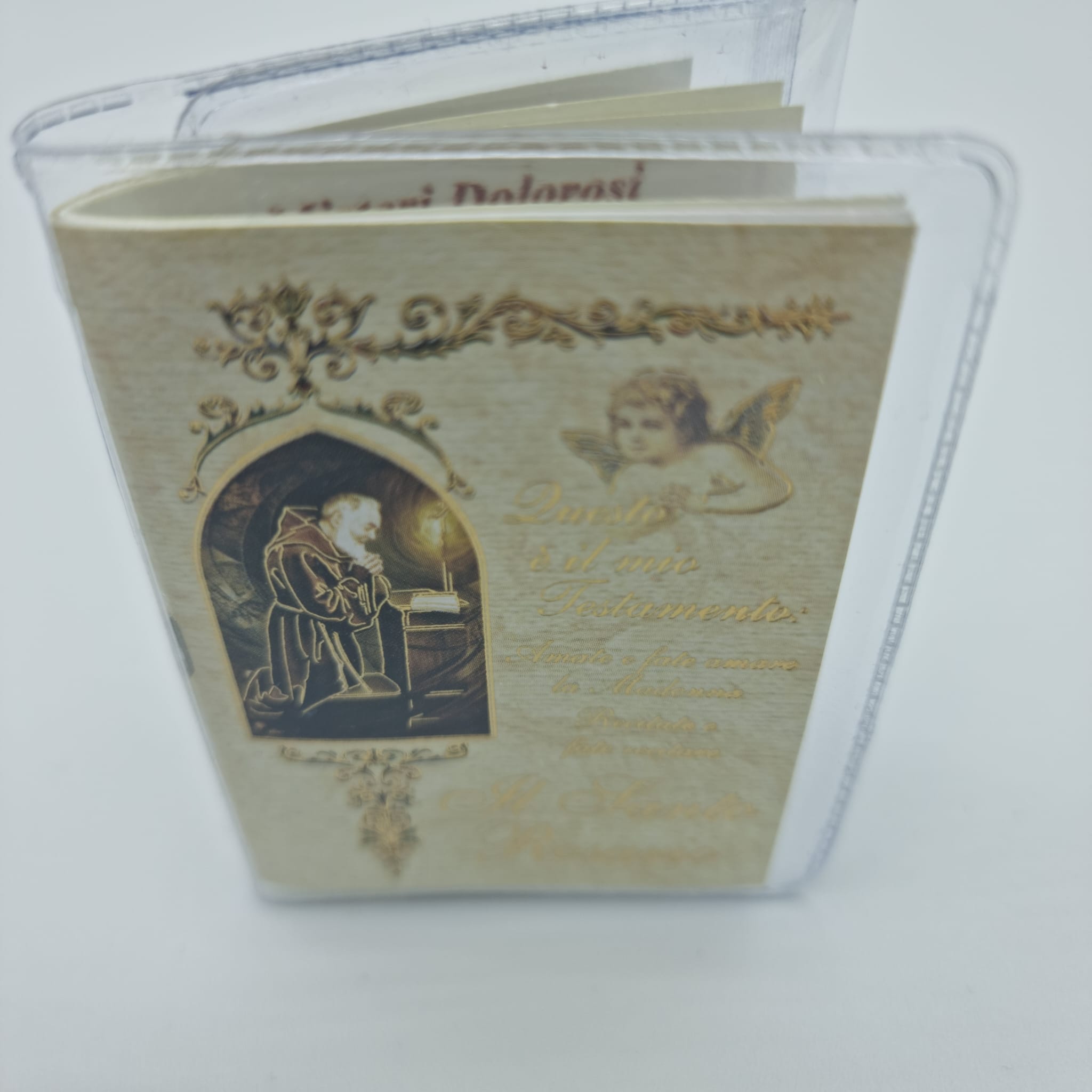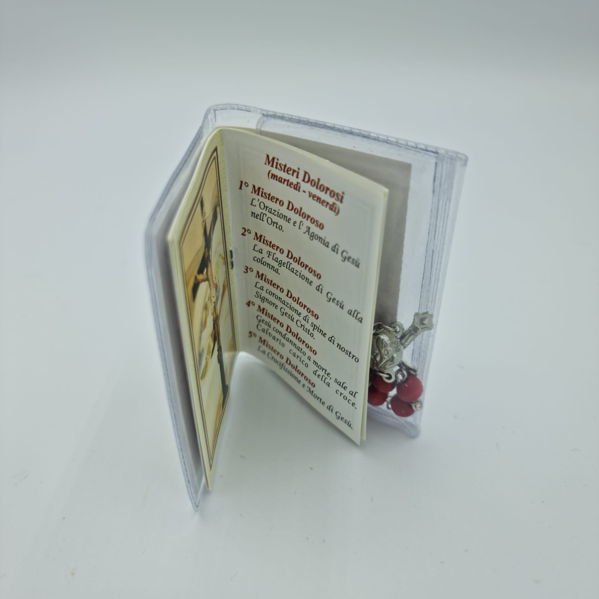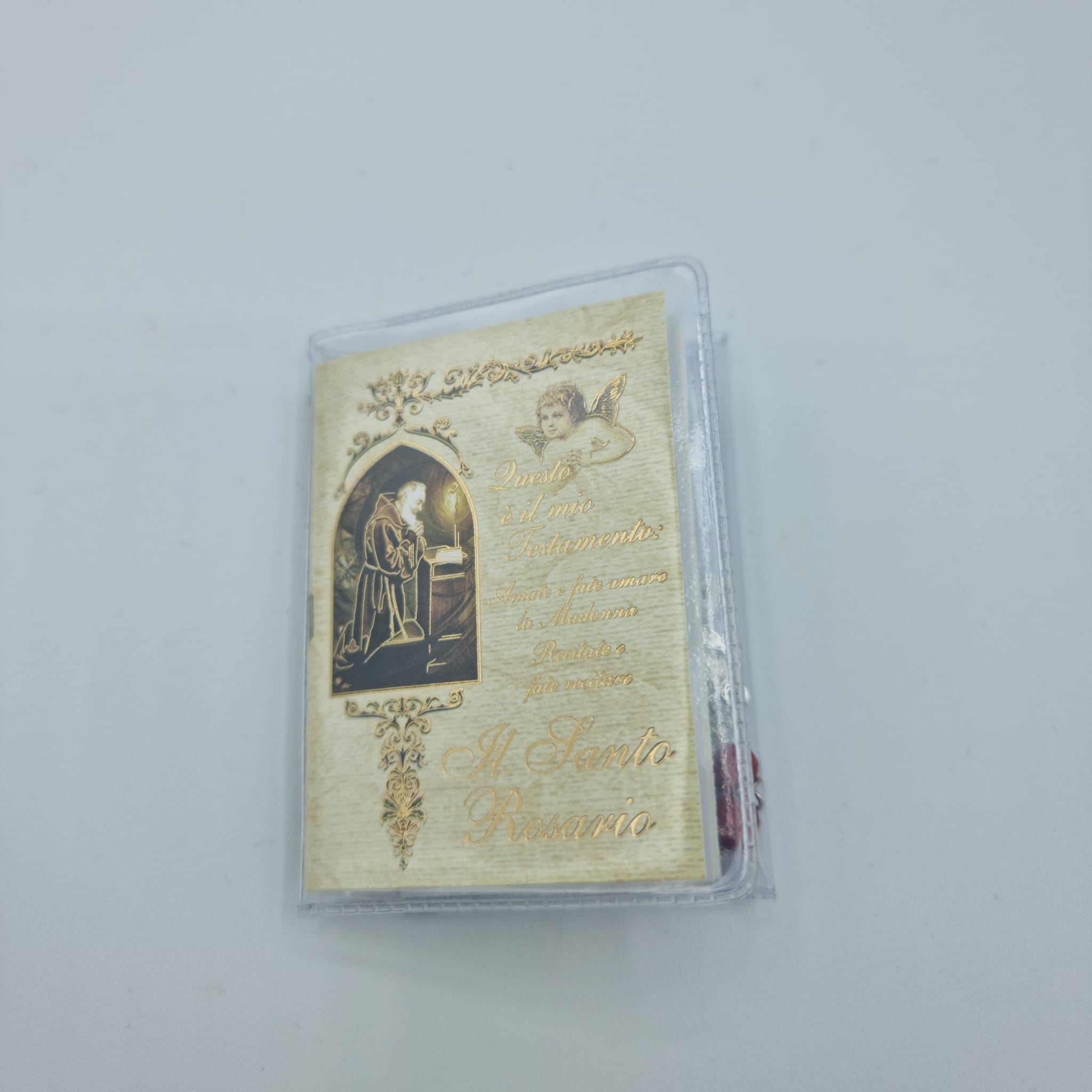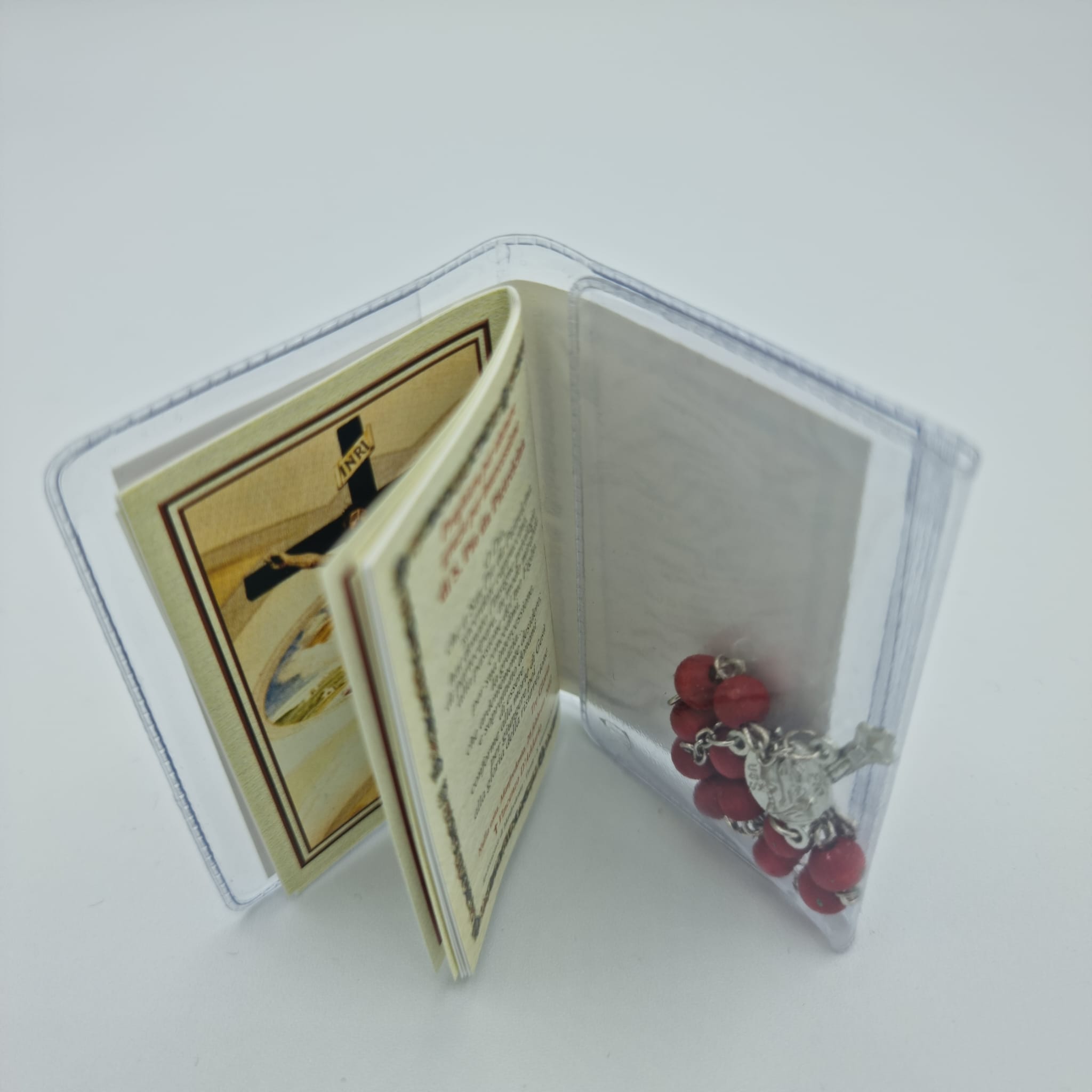 Custodia in pvc a tre tasche con libricino per la recita del “Santo Rosario”.